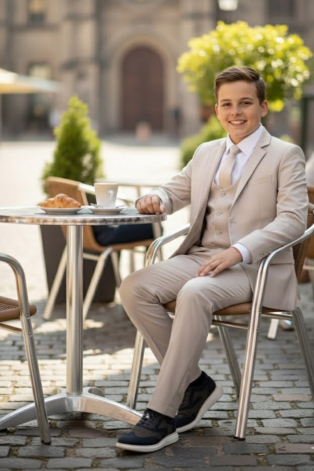 "Noah" Perry Ellis Kids Light Tan Suit (5-Piece Set)