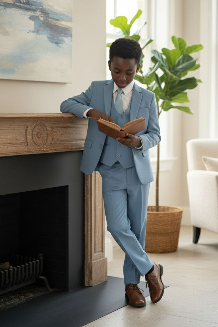 "Noah" Perry Ellis Kids Dusty Blue Suit (5-Piece Set)