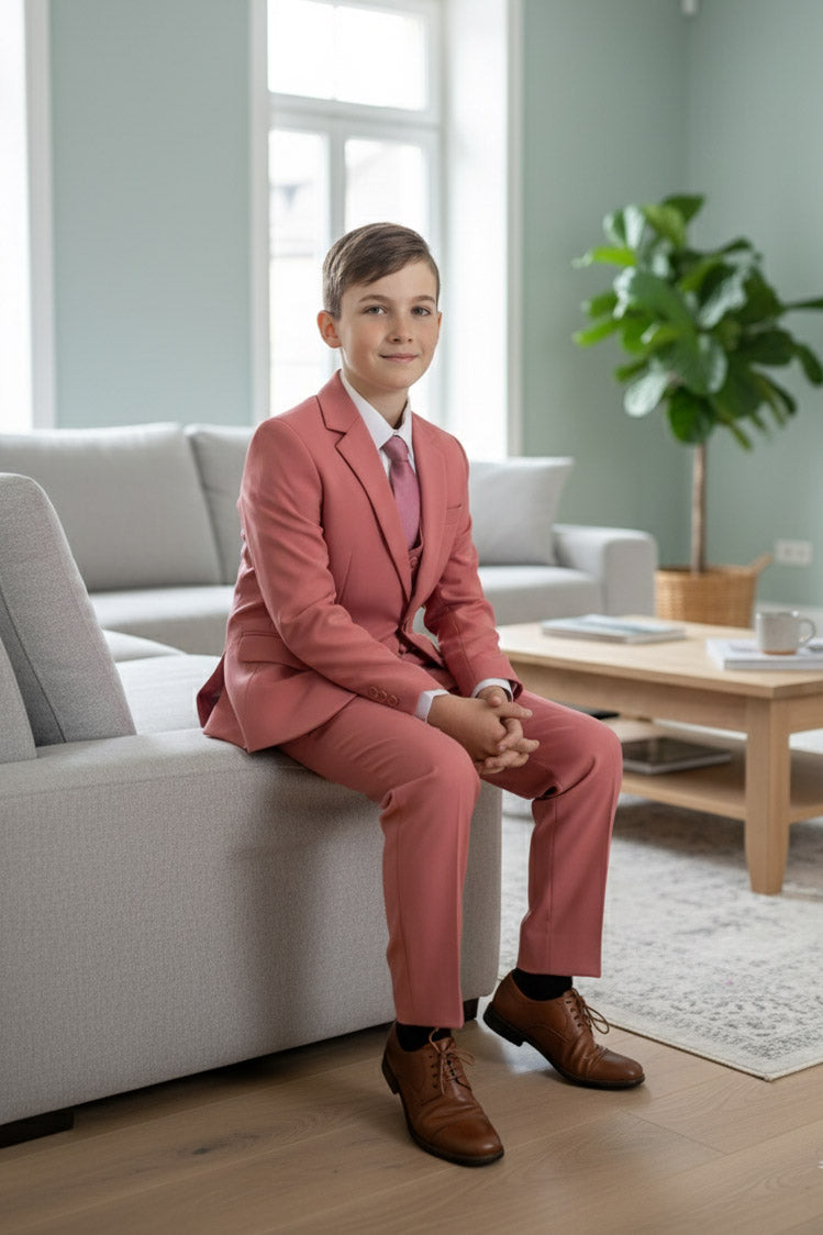 "Noah" Perry Ellis Kids Coral Mauve Suit (5-Piece Set)