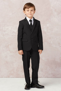 "Liam" Kids Onyx Black Suit (5-Piece Set)