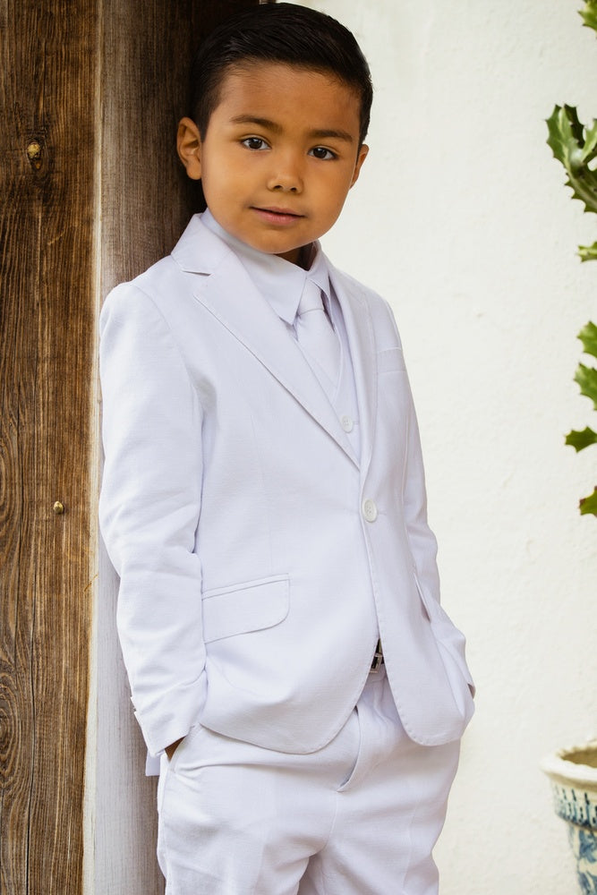This 5-piece set includes the jacket, pants, shirt, vest and necktie.