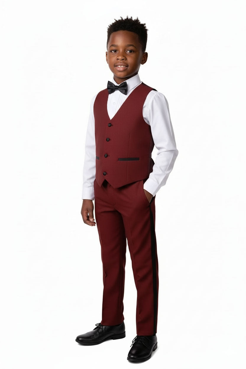 Featured on TheKnot.com The "Prodigy" Burgundy 5-Piece Kids Set is featured in TheKnot.com's exclusive fashion gallery. |