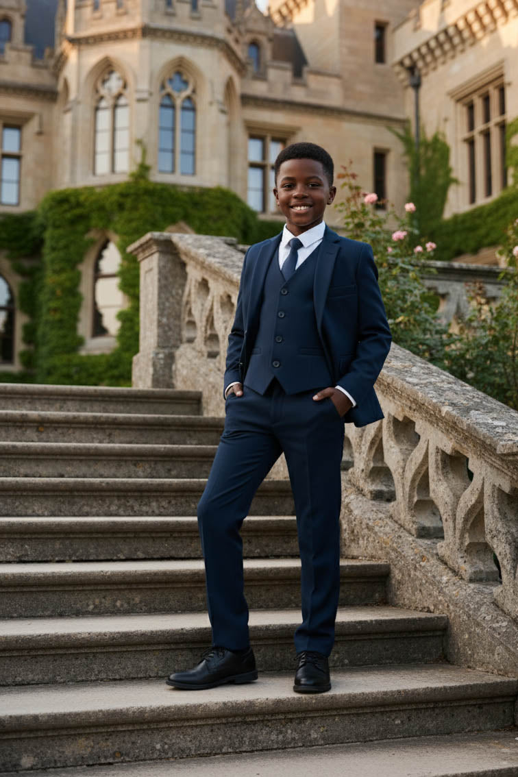 The "Liam" 5-Piece Suit Set, designed by BLACKTIE, is part of our Stretch Collection (our most luxurious collection). Premium jacket, pants, and vest fabric consists of four-way stretch so your little one can still run & play in comfort. Stretch interior lining, a stretch shirt, expandable pants, and adjustable vest & necktie were designed to provide the most comfort possible. The overall craftsmanship of the Stretch Collection is equal to what you find in premium adult version suits. When only the best will do for your precious son or daughter, the Stretch Collection is the way to go!